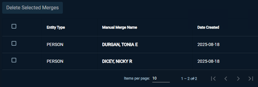 Added the ability to multiselect manual merged entitles when deleting